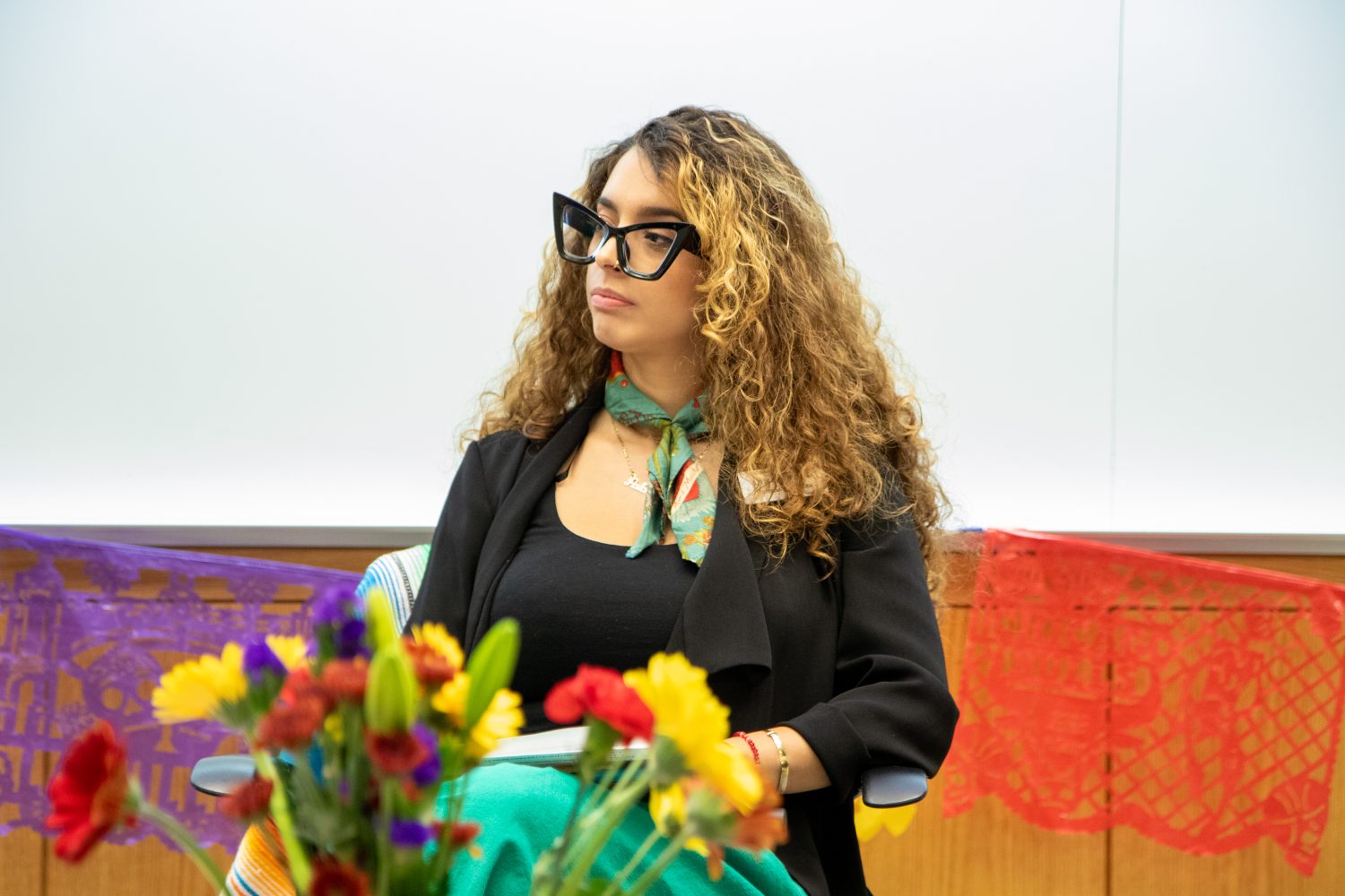 - Paloma Barraza, History, Iberian & Latin American Studies Librarian, University Libraries, at the event Entre Comadres: A conversation with author Sandra Cisneros on Monday, Oct. 14, 2024 at Walter Library. (Photo/K Carmody-McIntosh)