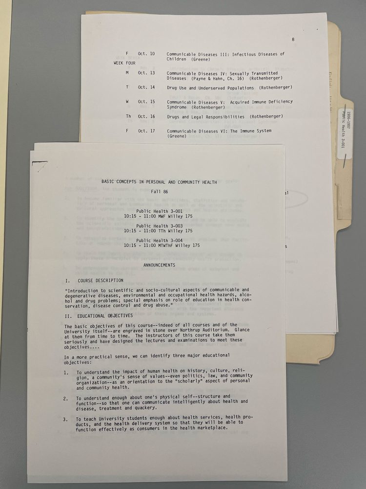- Syllabus for Basic Concepts in Personal and Community Health, taught at the UMN in 1986. (Photo/Sommer Wagen)